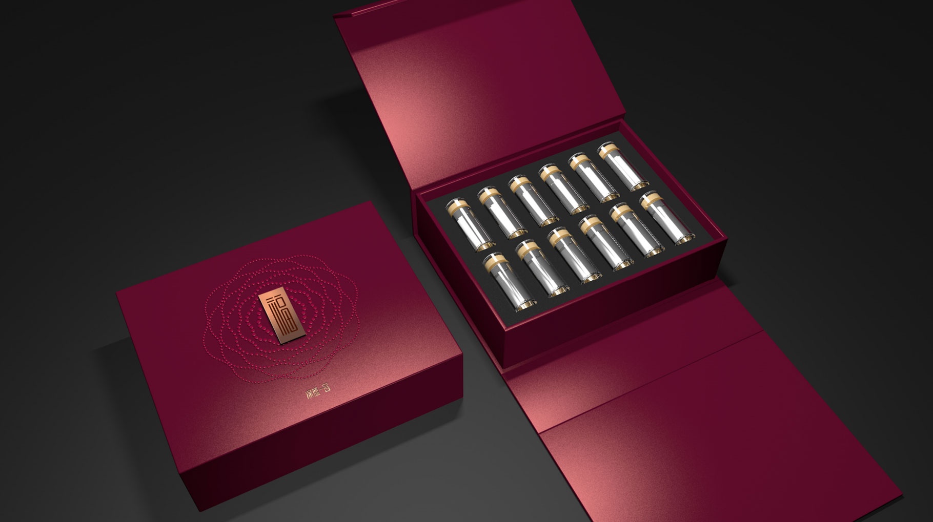 此次品牌整體包裝形象設計,以打造具有東方美學的質地文化作為出發點,結合高端禮品所需要承載的氣質和儀式感,設計出具有高品質的海參禮盒包裝。