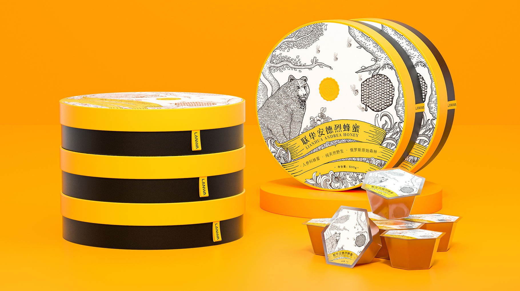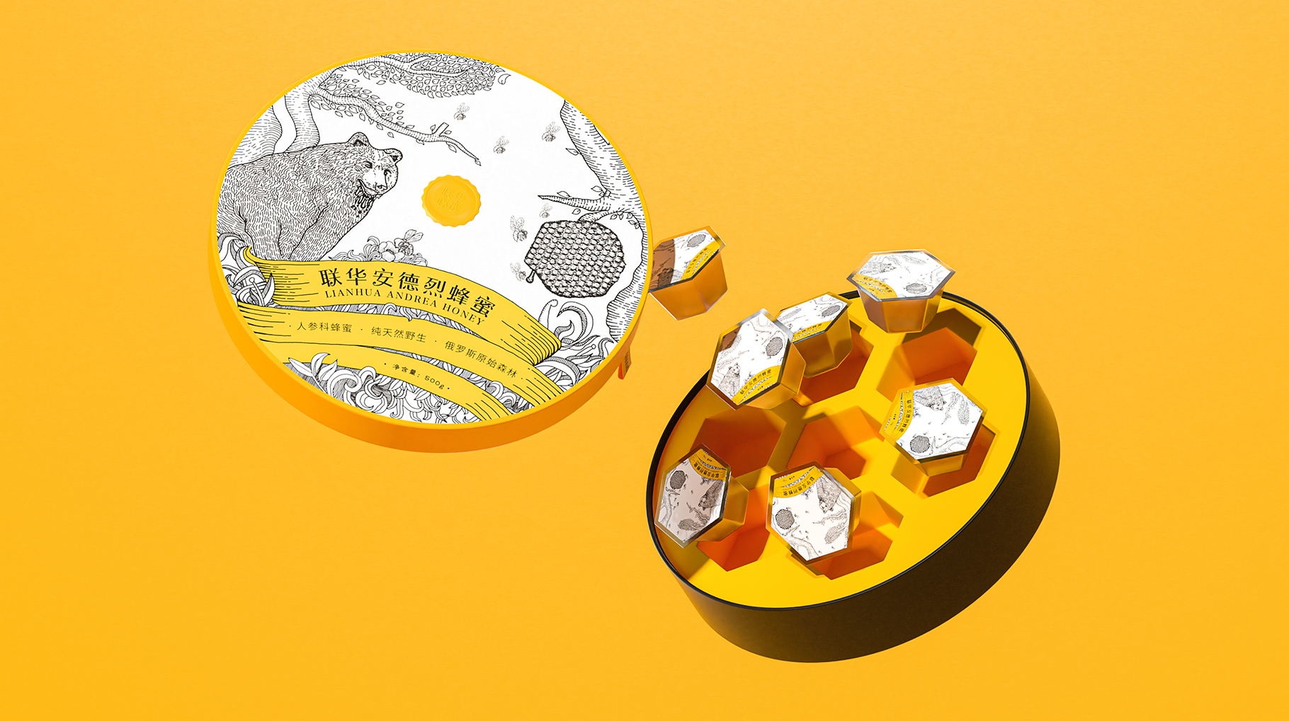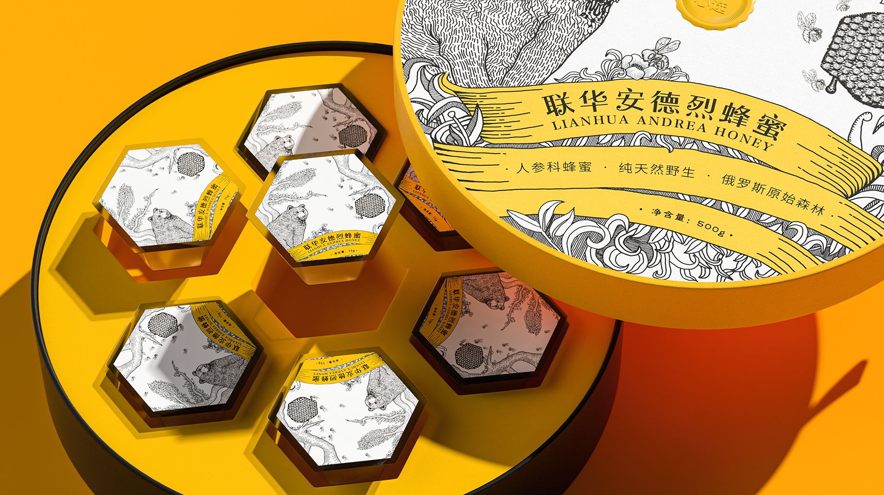 新穎的蜂蜜產(chǎn)品包裝設(shè)計,包裝設(shè)計形式區(qū)別于常規(guī)的包裝裝訂方式,讓產(chǎn)品的體驗更加人性化。
