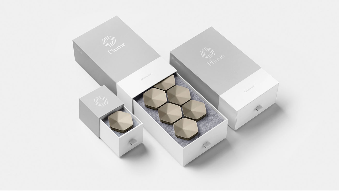角色創造了一種無復雜感的視覺語言,并稱贊了Plume WiFi體驗的平淡無奇和綜合性。設計過程以產品體驗的兩個基本屬性為指導:適應性和環境。“適應性”有助于定義一種美學,通過視覺上的透明度,反射率或模塊化方式將其無縫整合到產品體驗中。